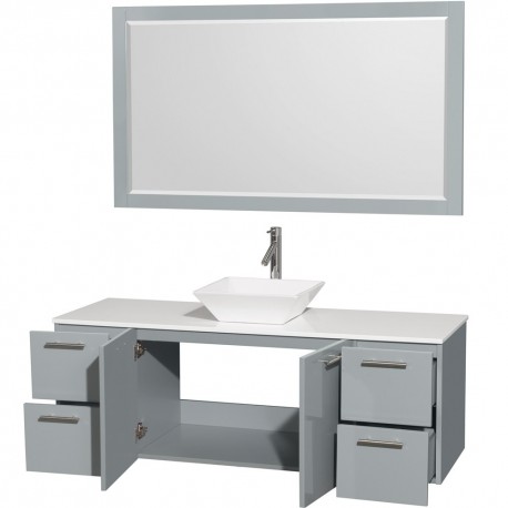 60 inch Single Bathroom Vanity in Dove Gray, White Man-Made Stone Countertop, Pyra White Porcelain Sink, and 58 inch Mirror