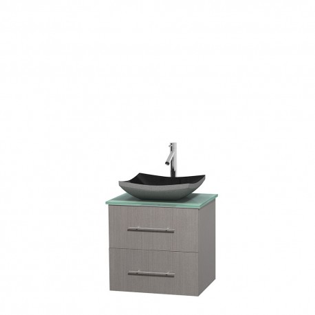 24 inch Single Bathroom Vanity in Gray Oak, Green Glass Countertop, Altair Black Granite Sink, and No Mirror