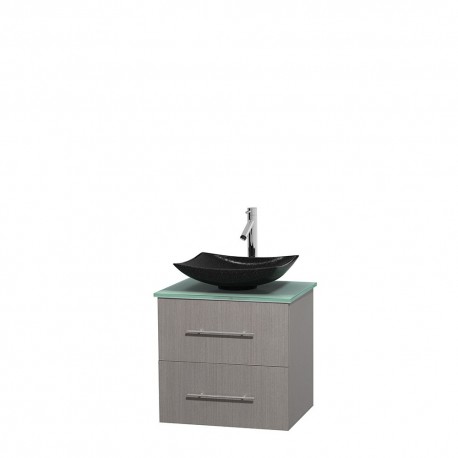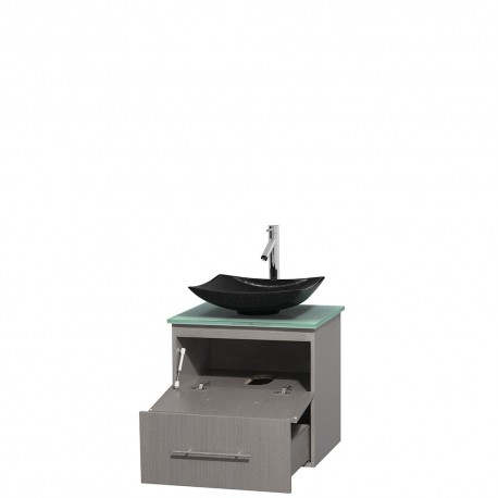 24 inch Single Bathroom Vanity in Gray Oak, Green Glass Countertop, Arista Black Granite Sink, and No Mirror