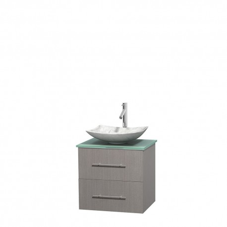 24 inch Single Bathroom Vanity in Gray Oak, Green Glass Countertop, Arista White Carrera Marble Sink, and No Mirror