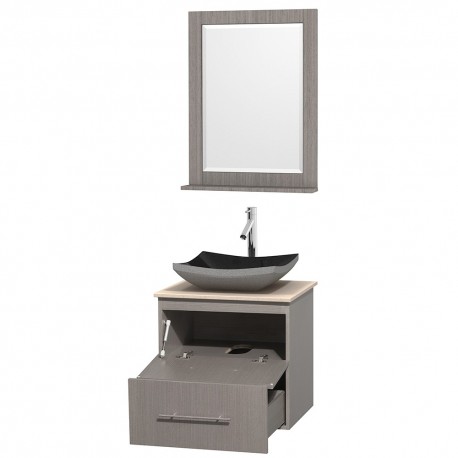 24 inch Single Bathroom Vanity in Gray Oak, Ivory Marble Countertop, Altair Black Granite Sink, and 24 inch Mirror