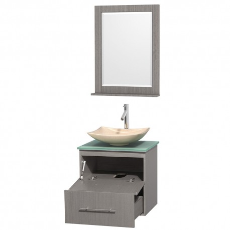 24 inch Single Bathroom Vanity in Gray Oak, Ivory Marble Countertop, Arista Ivory Marble Sink, and 24 inch Mirror