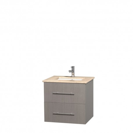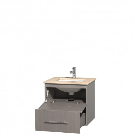 24 inch Single Bathroom Vanity in Gray Oak, Ivory Marble Countertop, Undermount Square Sink, and No Mirror