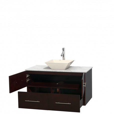42 inch Single Bathroom Vanity in Espresso, White Carrera Marble Countertop, Pyra Bone Porcelain Sink, and No Mirror