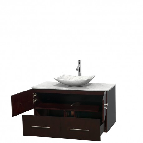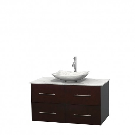 42 inch Single Bathroom Vanity in Espresso, White Carrera Marble Countertop, Arista White Carrera Marble Sink, and No Mirror