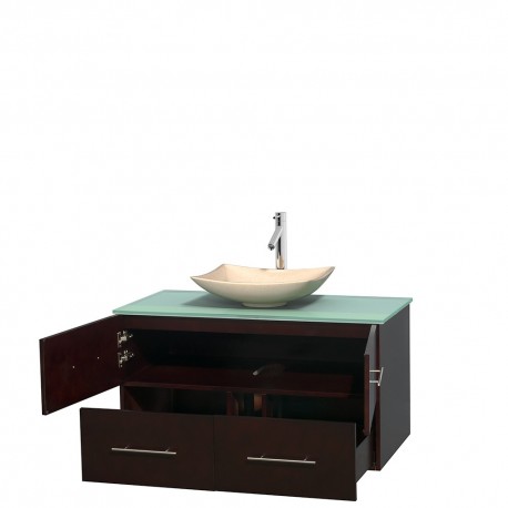 42 inch Single Bathroom Vanity in Espresso, Green Glass Countertop, Arista Ivory Marble Sink, and No Mirror