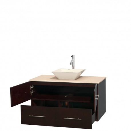 42 inch Single Bathroom Vanity in Espresso, Ivory Marble Countertop, Pyra Bone Porcelain Sink, and No Mirror