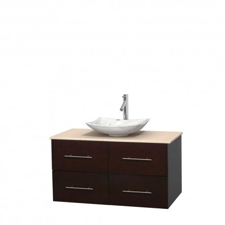 42 inch Single Bathroom Vanity in Espresso, Ivory Marble Countertop, Arista White Carrera Marble Sink, and No Mirror
