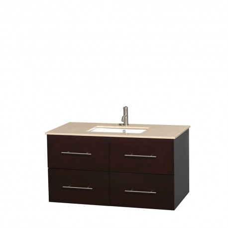 42 inch Single Bathroom Vanity in Espresso, Ivory Marble Countertop, Undermount Square Sink, and No Mirror