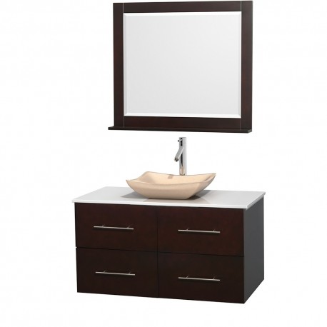 42 inch Single Bathroom Vanity in Espresso, White Man-Made Stone Countertop, Avalon Ivory Marble Sink, and 36 inch Mirror