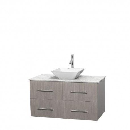 42 inch Single Bathroom Vanity in Gray Oak, White Carrera Marble Countertop, Pyra White Porcelain Sink, and No Mirror