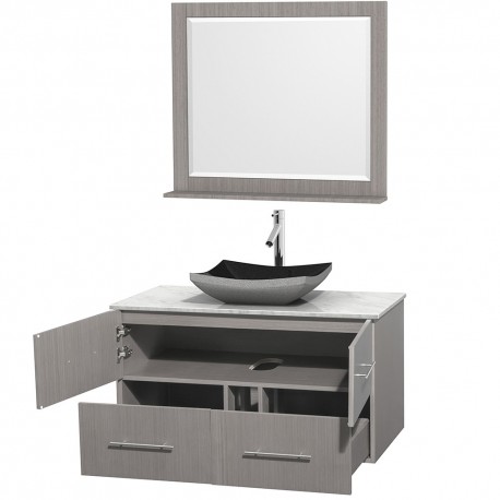 42 inch Single Bathroom Vanity in Gray Oak, White Carrera Marble Countertop, Altair Black Granite Sink, and 36 inch Mirror