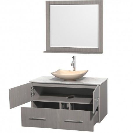 42 inch Single Bathroom Vanity in Gray Oak, White Carrera Marble Countertop, Arista Ivory Marble Sink, and 36 inch Mirror