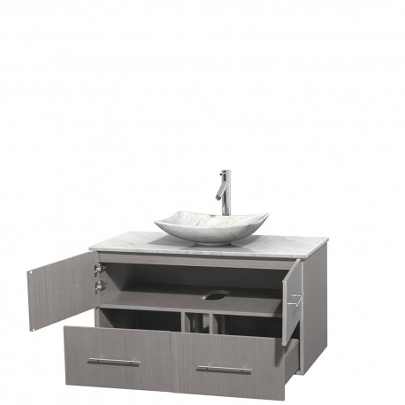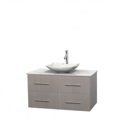 42 inch Single Bathroom Vanity in Gray Oak, White Carrera Marble Countertop, Arista White Carrera Marble Sink, and No Mirror