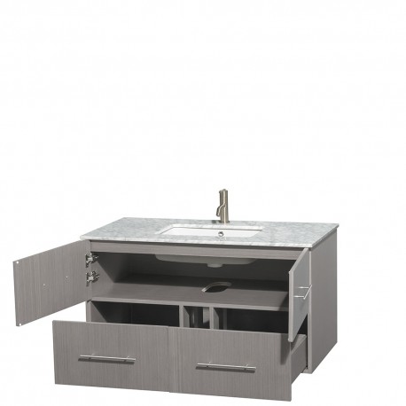 42 inch Single Bathroom Vanity in Gray Oak, White Carrera Marble Countertop, Undermount Square Sink, and No Mirror