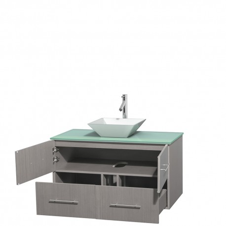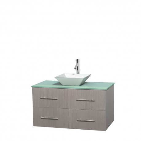 42 inch Single Bathroom Vanity in Gray Oak, Green Glass Countertop, Pyra White Porcelain Sink, and No Mirror