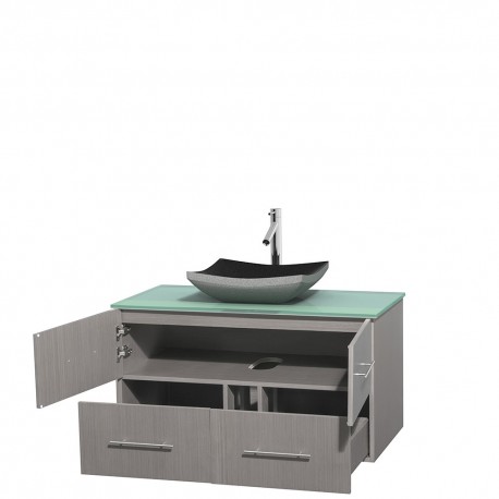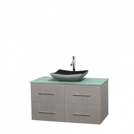 42 inch Single Bathroom Vanity in Gray Oak, Green Glass Countertop, Altair Black Granite Sink, and No Mirror
