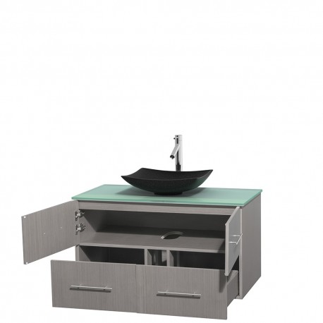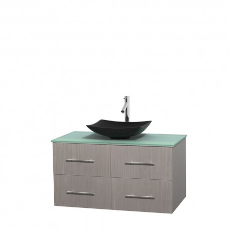 42 inch Single Bathroom Vanity in Gray Oak, Green Glass Countertop, Arista Black Granite Sink, and No Mirror