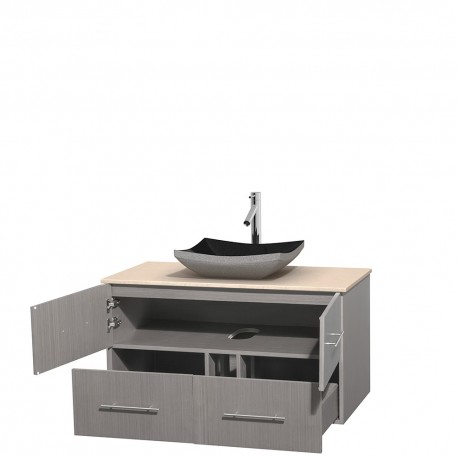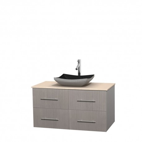 42 inch Single Bathroom Vanity in Gray Oak, Ivory Marble Countertop, Altair Black Granite Sink, and No Mirror
