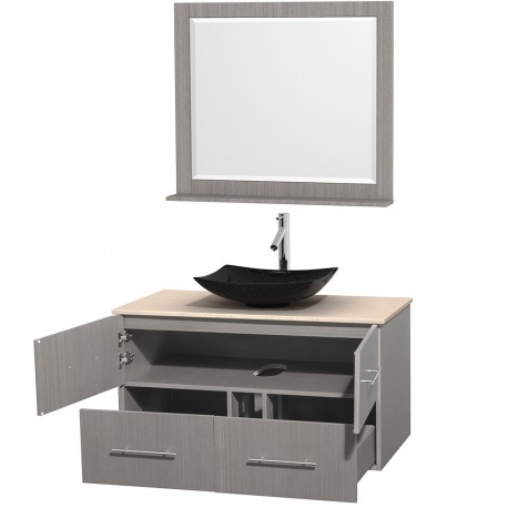 42 inch Single Bathroom Vanity in Gray Oak, Ivory Marble Countertop, Arista Black Granite Sink, and 36 inch Mirror