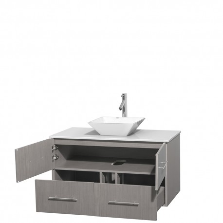 42 inch Single Bathroom Vanity in Gray Oak, White Man-Made Stone Countertop, Pyra White Porcelain Sink, and No Mirror