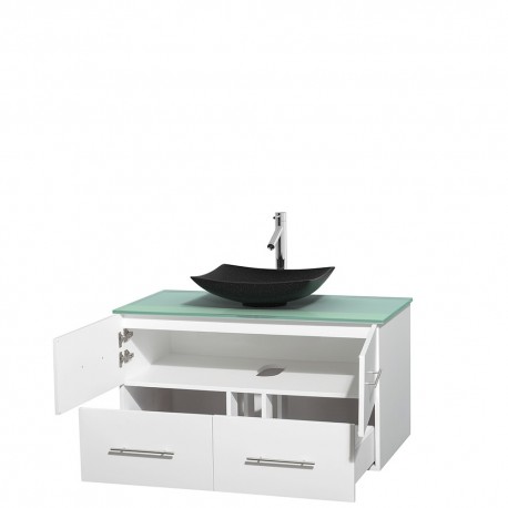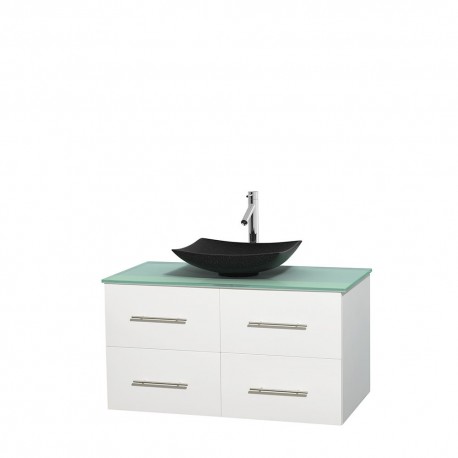 42 inch Single Bathroom Vanity in Matte White, Green Glass Countertop, Arista Black Granite Sink, and No Mirror