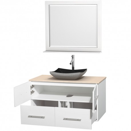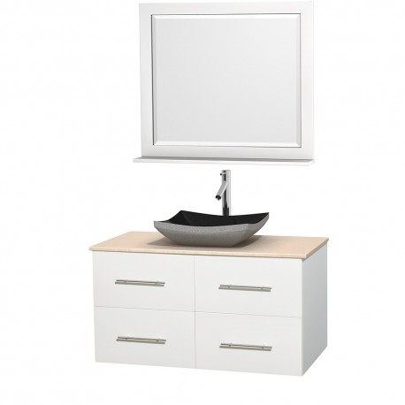 42 inch Single Bathroom Vanity in Matte White, Ivory Marble Countertop, Altair Black Granite Sink, and 36 inch Mirror