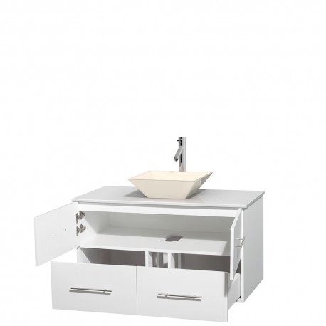 Simplicity and elegance combine in the perfect lines of the Centra vanity by the Wyndham Collection. If cutting-edge contemporary design is your style then the Centra vanity is for you - modern, chic and built to last a lifetime. Available with green glass, pure white man-made stone, ivory marble or white carrera marble counters, with stunning vessel or undermount sink(s) and matching mirror(s). Featuring soft-close door hinges, drawer glides, and meticulously finished with brushed chrome hardware. The attention to detail on this beautiful vanity is second to none.