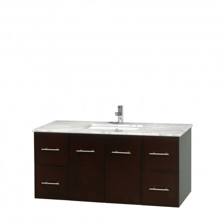 48 inch Single Bathroom Vanity in Espresso, White Carrera Marble Countertop, Undermount Square Sink, and No Mirror