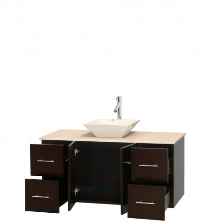 48 inch Single Bathroom Vanity in Espresso, Ivory Marble Countertop, Pyra Bone Porcelain Sink, and No Mirror