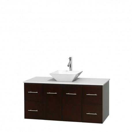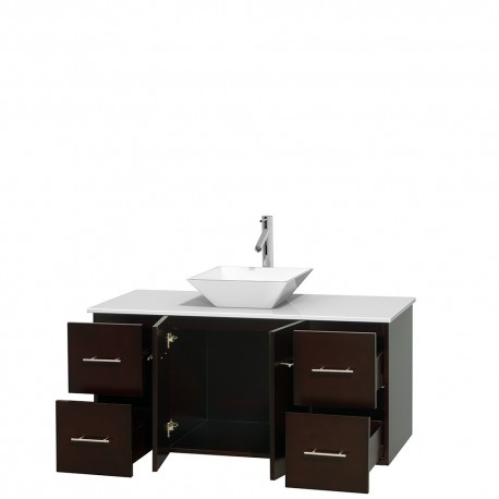 48 inch Single Bathroom Vanity in Espresso, White Man-Made Stone Countertop, Pyra White Porcelain Sink, and No Mirror
