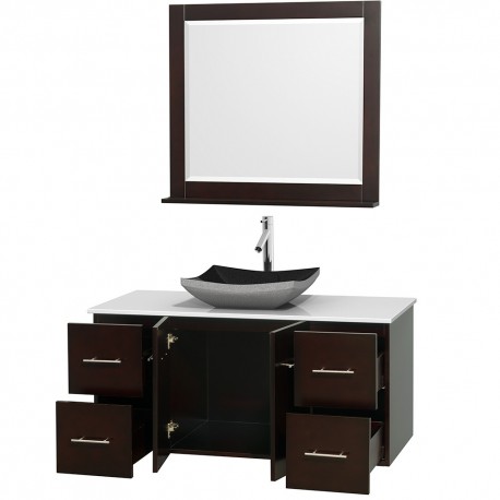 48 inch Single Bathroom Vanity in Espresso, White Man-Made Stone Countertop, Altair Black Granite Sink, and 36 inch Mirror