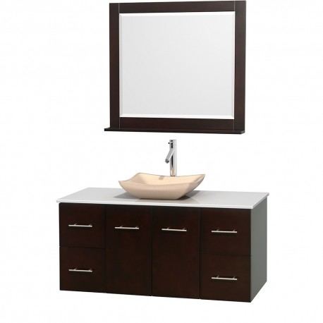 48 inch Single Bathroom Vanity in Espresso, White Man-Made Stone Countertop, Avalon Ivory Marble Sink, and 36 inch Mirror