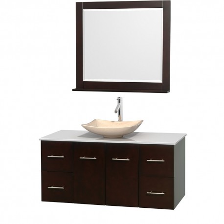 48 inch Single Bathroom Vanity in Espresso, White Man-Made Stone Countertop, Arista Ivory Marble Sink, and 36 inch Mirror