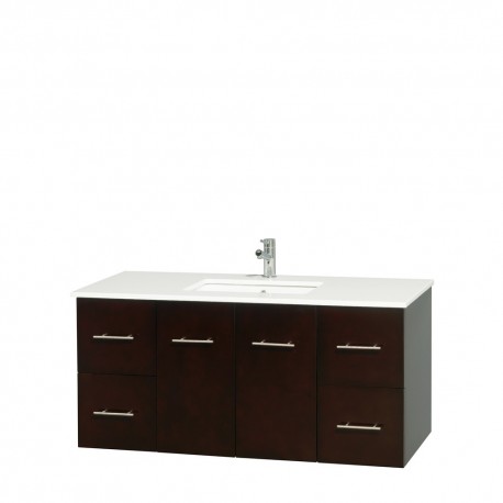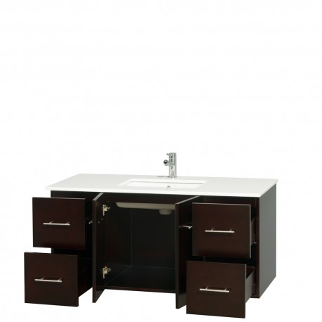 48 inch Single Bathroom Vanity in Espresso, White Man-Made Stone Countertop, Undermount Square Sink, and No Mirror