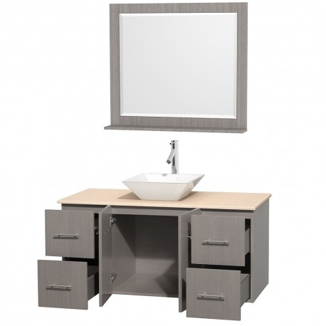 48 inch Single Bathroom Vanity in Gray Oak, Ivory Marble Countertop, Pyra White Porcelain Sink, and 36 inch Mirror
