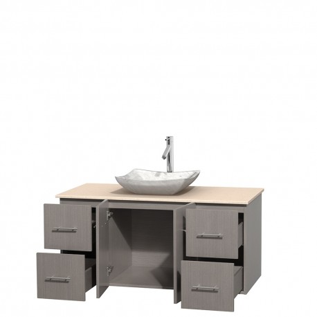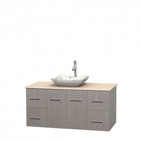 48 inch Single Bathroom Vanity in Gray Oak, Ivory Marble Countertop, Avalon White Carrera Marble Sink, and No Mirror