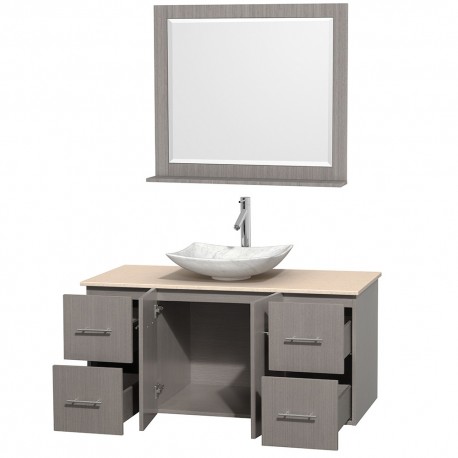 48 inch Single Bathroom Vanity in Gray Oak, Ivory Marble Countertop, Arista White Carrera Marble Sink, and 36 inch Mirror
