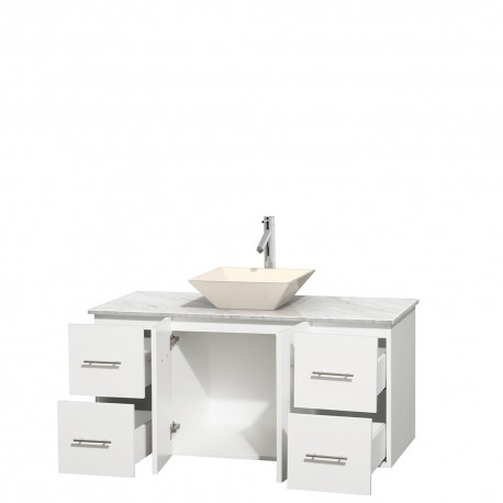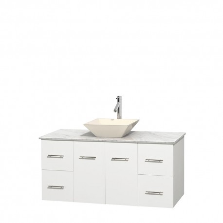 48 inch Single Bathroom Vanity in Matte White, White Carrera Marble Countertop, Pyra Bone Porcelain Sink, and No Mirror