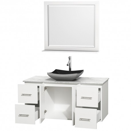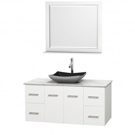 48 inch Single Bathroom Vanity in Matte White, White Carrera Marble Countertop, Altair Black Granite Sink, and 36 inch Mirror