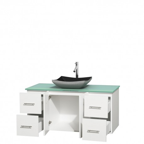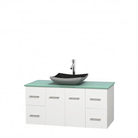 48 inch Single Bathroom Vanity in Matte White, Green Glass Countertop, Altair Black Granite Sink, and No Mirror