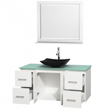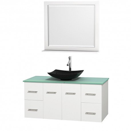48 inch Single Bathroom Vanity in Matte White, Green Glass Countertop, Arista Black Granite Sink, and 36 inch Mirror
