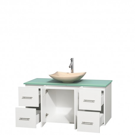 48 inch Single Bathroom Vanity in Matte White, Green Glass Countertop, Arista Ivory Marble Sink, and No Mirror