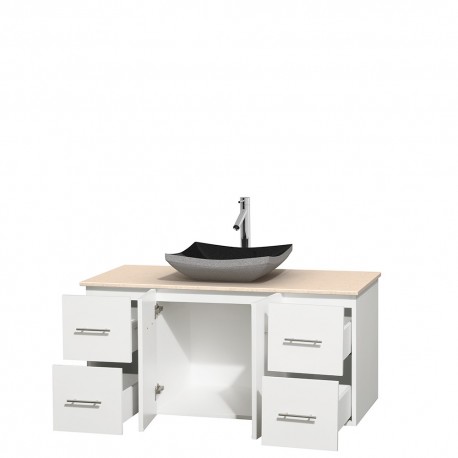 48 inch Single Bathroom Vanity in Matte White, Ivory Marble Countertop, Altair Black Granite Sink, and No Mirror