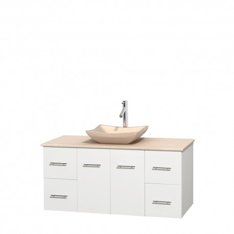 48 inch Single Bathroom Vanity in Matte White, Ivory Marble Countertop, Avalon Ivory Marble Sink, and No Mirror
