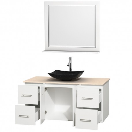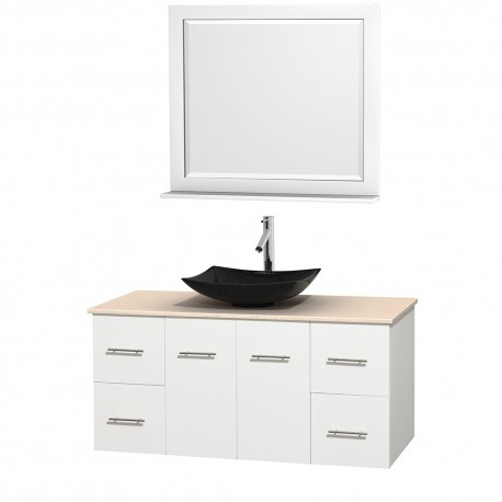 48 inch Single Bathroom Vanity in Matte White, Ivory Marble Countertop, Arista Black Granite Sink, and 36 inch Mirror
