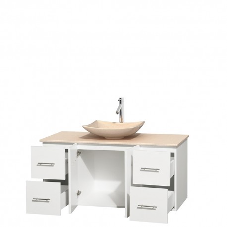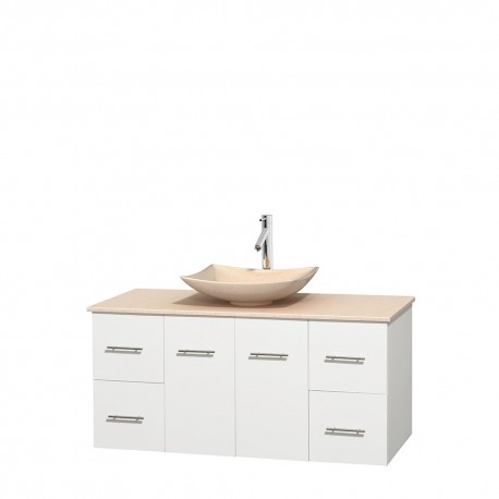 48 inch Single Bathroom Vanity in Matte White, Ivory Marble Countertop, Arista Ivory Marble Sink, and No Mirror