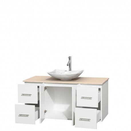 48 inch Single Bathroom Vanity in Matte White, Ivory Marble Countertop, Arista White Carrera Marble Sink, and No Mirror