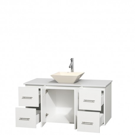 48 inch Single Bathroom Vanity in Matte White, White Man-Made Stone Countertop, Pyra Bone Porcelain Sink, and No Mirror