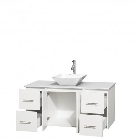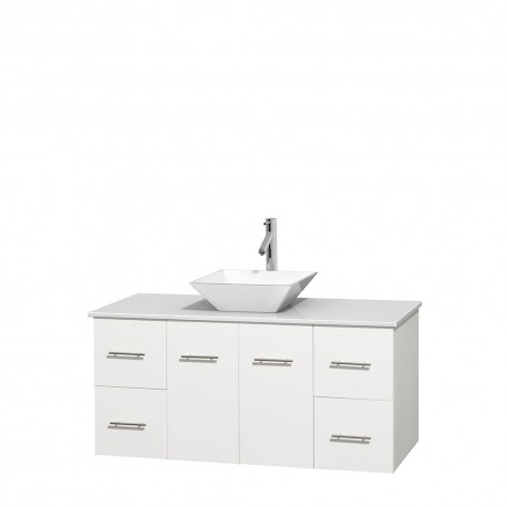 48 inch Single Bathroom Vanity in Matte White, White Man-Made Stone Countertop, Pyra White Porcelain Sink, and No Mirror